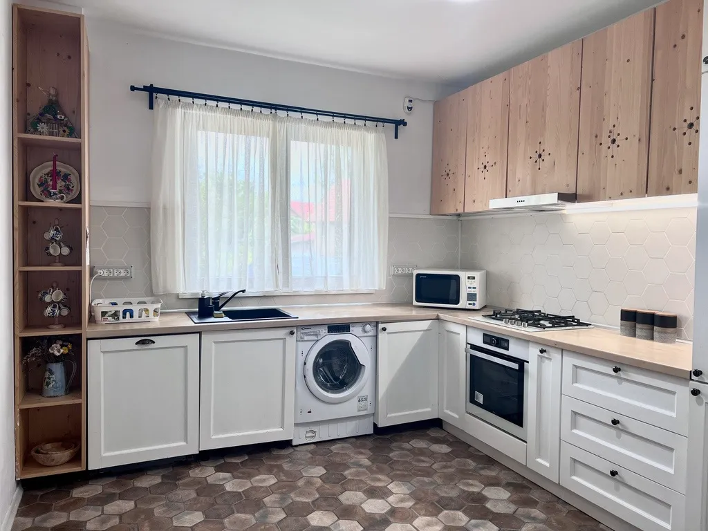 Bucătărie complet echipată cu aparatură modernă (mașină de spălat vase, mașină de spălat, 2 frigidere, espressor etc.)